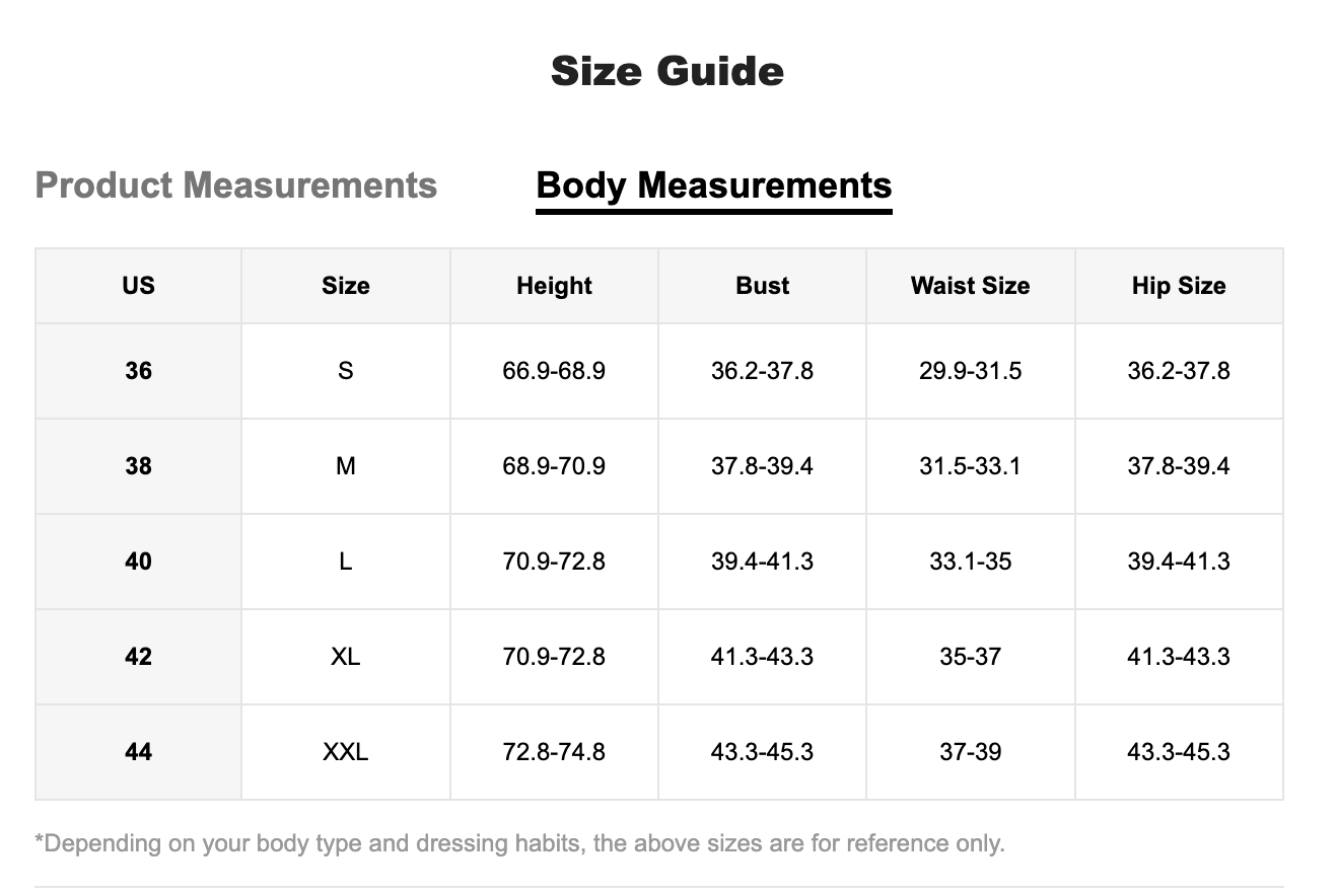 Size Guide - fits true to size